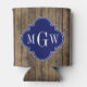 Rustic Wood L Planks #1 Navy Quatrefoil 3 M'gram Can Cooler