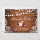 Rustic Wood String Lights Lace and Watercolor Burgundy Marsala Floral Bouquet Save the Date Card