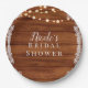 Rustic Wood Lace & String Lights Wedding Bridal Paper Plate
