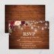 Rustic Wood Lights Mason Jars Watercolor Burgundy Marsala Floral Wedding RSVP Card