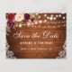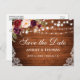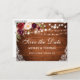 Rustic Wood String Lights Lace Watercolor Burgundy Floral Save the Date Postcard - Printed Back