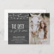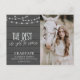 Rustic Wood with String Lights & Featuring Grad's Photo - Handlettered text reads "The Best is yet to come" with glowing string lights hanging overhead. Include. a paragraph with your grad's plans on the back of the card. If you prefer, this area can easily be turned off.