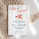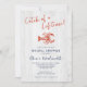 This rustic coastal bridal shower invitation features a light rustic wood background, with red hand drawn lobster, and the clever saying “Catch of a Lifetime” in casual handwriting script.