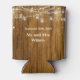 Introducing our charming Rustic Wood Mason Jar Hanging Lights Wedding Can Cooler, perfect for your Wedding Favor Giveaway! With its rustic appeal, featuring white typography and a barn wood background, these coolers will add a touch of vintage elegance to your special day. Complete with hanging mason jar lights and an option to personalize it with your last name, they make for a truly unique and thoughtful gift.