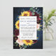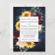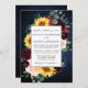 Modern Elegant Watercolor Burgundy Marsala Floral Frame Wedding Invitation includes burgundy roses, pink roses, red flowers, blue flowers, sunflowers, eucalyptus leaves and botanical greenery. Rustic Country Blue Wood.