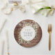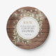 Rustic Wood Monogram Greenery Couples Shower Paper Plate