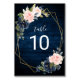 Dark navy blue floral geometric wedding table number featuring elegant bouquet of navy blue, royal blue , white , blush rose and sage green eucalyptus leaves and elegant glitter geometric neutral frame. Please contact me for any help in customization or if you need any other product with this design.