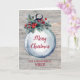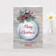 Merry Christmas for niece card with rustic country chalkboard wood pattern and watercolor christmas ornament with winter foliage and holly.