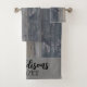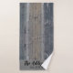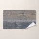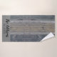 Un design rustique de planches en bois patiné gris et brun créant un charme champêtre où, ci-dessous, sur un bord gris brillant, vous pouvez le personnaliser avec un nom de famille et année ou nom ou logo. Décor de cottage moderne