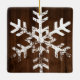 Rustic Wood Photo Border White Snowflakes Holiday Ceramic Ornament