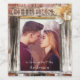 Romantic engagement wine label featuring your own favorite photo framed by rustic wood and a flower.