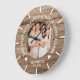 Rustic wood photo wall clock to personalize with a favourite family photo. Personalize with family name and established year. An inspirational family quote 'Time spent with family is worth every second' frames the picture in the centre.