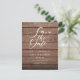 This rustic save-the-date card features an elegant script save-the-date above your details set in elegant typography on a rustic wood panels background. The reverse has additional save-the-date details, including your special photo and wedding website QR code, with your return address and space for your recipient's address. Designed by Thisisnotme©