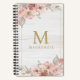 Rustic Wood Pink Floral Watercolor Monogram Notebook