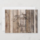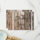 Aged wood planks and linen-look texture with stitches rustic thank you card.