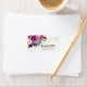 Pretty spring plum & blue floral return address label set on a rustic wood background.