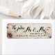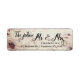 A simple, rustic modern return address label for the future Mr and Mrs. in beautiful script typography on a wood background. Elegant return address labels for use for weddings, bridal showers or any other mailings before your wedding.