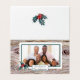 Easily add your own family photo and customize all the text on this simple holiday card using the template fields. This vintage inspired Christmas card design features a motif of green holly leaves and red berries against a rustic wood grain background. Find coordinating labels, stamps and other items in the Watercolor Winter collection from Asterisk Designs.