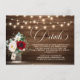 Rustic Wood String Light Burgundy Wedding Details Enclosure Card