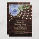 Rustic Wood String Lights Blue Floral Sweet 16 Invitation