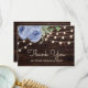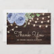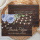 Rustic Wood String Lights Blue Floral Wedding Thank You Card
