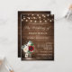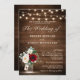 Rustic Wood String Lights Burgundy Floral Wedding Invitation