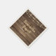 Personalized wedding reception napkins with a rustic, country, brown, weathered barn wood background and soft yellow string lights with first names and your wedding date. your wedding date in a country western hand-printed font and your name in a brush script font.