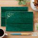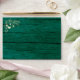 Elegant, modern, country rustic barn wood green 5x7 envelope for wedding invitations with return address, string lights and gold floral lace.