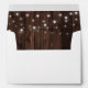 Personalized rustic wedding envelopes with a return address and featuring barn wood and string lights. Easily personalize these pre-addressed wedding envelopes with your contact details. Our rustic textured envelopes are the perfect choice for your rustic country or barn wedding party.