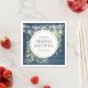 Featuring pretty string lights and delicate watercolor greenery leaves on a rustic blue wood background, this chic botanical bridal shower napkin can be personalized with your special bridal shower information. Designed by Thisisnotme©