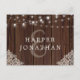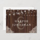 Rustic Wood String Lights Lace Wedding RSVP Postcard