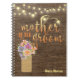 Help keep mom organized! Rustic notebook features a photorealistic dark wood background, string lights and a mason jar stuffed with pastel flowers. Personalized.