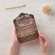 All in one wedding invitation featuring pretty string lights, a hand-drawn floral garland and chic typography on a rustic wood panels background. The invitation includes a perforated RSVP with your wedding website QR code and details. Designed by Thisisnotme©