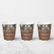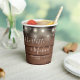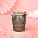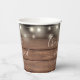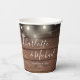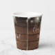 Elegant rustic wedding paper cup personalized with signature style names and your special wedding date on a string lights and wood panels background. Designed by Thisisnotme©