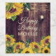 Rustic Wood Sunflower String Light Happy Birthday Wine Label