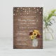 Rustic Wood Sunflowers Burgundy Mason Jar Wedding Invitation. Rustic Wood Baby's Breath String Lights Wedding Invitation