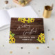 This warm, rustic design features a modern handwriting font that was used to create a graphic reading "Wedding Guestbook". The background was covered in a brown wooden image and accented with images depicting watercolor sunflowers. Just perfect for your barn, casual, or country wedding. Use the template fields to add your personal details. // 151 //