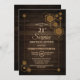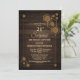 Rustic woodgrain surprise 21st birthday dinner party invitation with a unique geometric gold frame.
