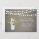 Célébrez votre journée spéciale avec cette élégante invitation à la fête surprise. Ce design comprend des lampes à cordes, un bocal de mason et un bouquet de fleurs avec un arrière - plan en bois rustique. Parfait pour un événement automne, automne.