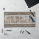 The Rustic Wood Tone Grey Monogram Stripe Desk Mat is a great way to protect your desk, counter or workbench in classic rustic style. Easily personalize with your monogram.
