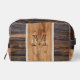 Whether you're on an overnight business trip, weekend getaway or, backpacking in the countryside, the Rustic Wood Tone Monogram Dopp Kit bag is just the right size to keep all your travel accessories organized.