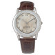 The watch looks really great! Very sharp and well done. The leather band is really nice, though for a man's watch I think it should be longer. Unfortunately, it isn't big enough for my husband's wrist but I will get a replacement because he is very excited to wear it!