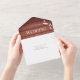 A rustic wood all-in-one wedding invitation. This invitation has a brown wood background and is decorated with white leaves. It includes the invitation as well as a tear-away RSVP card. Simply add your information, add this invite to your cart, and enjoy your beautiful wedding.