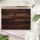 Custom rustic wedding envelopes with a return address on a rustic wood textured background.
