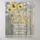 Signature Cocktail Drink Menu Wedding Decor Poster Templates - Faux Gold Foil Script Vintage Sunflowers and Elegant Lace on Rustic Wood Background.