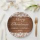 Rustic Wood & White Lace Merry Christmas Paper Plate