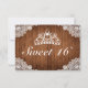 Sweet 16 RSVP card. Rustic style with wood planks background and white lace decor. More items are available in this style in our store. You can edit the design further, change colours, fonts and add extra text by clicking "customize further" link.