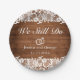Rustic Wood & White Lace Wedding Anniversary Paper Plate