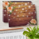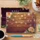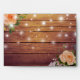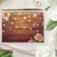 Wedding 5x7 Envelope Templates - Elegant Peach White Roses Floral and String Lights on Rustic Wood Background.