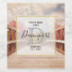 Personalized wine making bottle labels with a scenic photograph. A wooden bridge leading toward a pathway surrounded by forest trees changing colour. Semi-transparent square (with a faux gold foil border) overlay with your text inside.